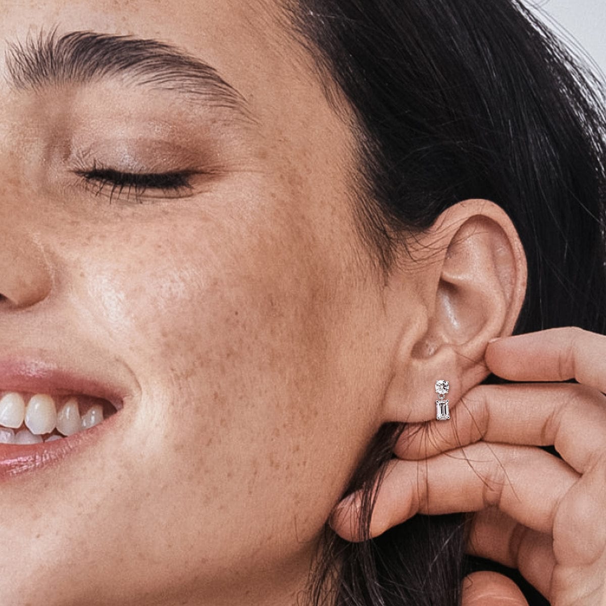 Everyday classic 1 carat total diamond drop earrings for women (approx. 10mm length), set with high brilliance white and eye clean natural diamonds in solid 14K white gold.