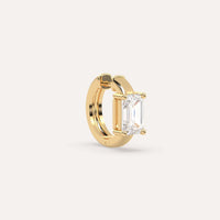 Classic 1 carat single diamond hoop earring for women or men, set with a high brilliance white and eye clean lab diamond in solid 14K yellow gold.