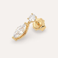 Everyday classic 1 carat total diamond drop earring for women (approx. 15mm length), set with high brilliance white and eye clean lab diamonds in solid 14K yellow gold.