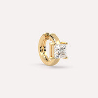 Classic 1 carat single diamond hoop earring for women or men, set with a high brilliance white and eye clean lab diamond in solid 14K yellow gold.
