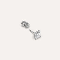 Classic 1 carat single diamond stud earring for women or men, set with a high brilliance white and eye clean lab diamond in solid 14K white gold.