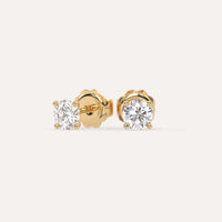 Classic 1 carat total diamond stud earrings for women, set with high brilliance white and eye clean lab diamonds in solid 14K yellow gold.