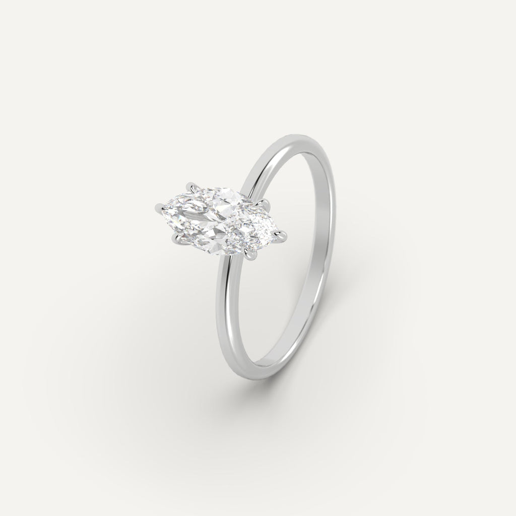 Solitaire 1 carat marquise cut engagement ring, set with a high brilliance white and eye clean natural diamond in solid 950 platinum