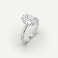 Halo 1 carat oval cut engagement ring, set with a high brilliance white and eye clean natural diamond in solid 950 platinum