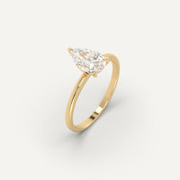 Solitaire 2 carat pear cut engagement ring, set with a high brilliance white and eye clean lab diamond in solid 14K yellow gold.