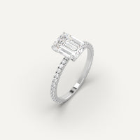 Pave 2 carat emerald cut diamond engagement ring, set with a high brilliance white and eye clean clarity enhanced natural diamond in solid 950 platinum.