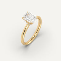 Hidden Halo 2 carat emerald cut diamond engagement ring, set with a high brilliance white and eye clean clarity enhanced natural diamond in solid 14K yellow gold.