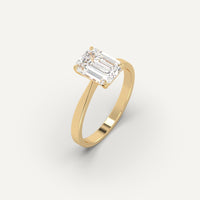 Cathedral 2 carat emerald cut diamond engagement ring, set with a high brilliance white and eye clean clarity enhanced natural diamond in solid 14K yellow gold.