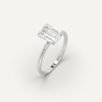 Whisper Thin 2 carat emerald cut engagement ring, set with a high brilliance white and eye clean natural diamond in solid 950 platinum