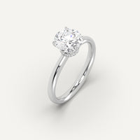 Hidden Halo 2 carat round cut diamond engagement ring, set with a high brilliance white and eye clean clarity enhanced natural diamond in solid 950 platinum.