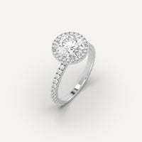 Halo 2 carat round cut diamond engagement ring, set with a high brilliance white and eye clean clarity enhanced natural diamond in solid 950 platinum.