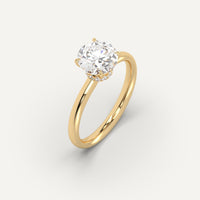 Hidden Halo 2 carat round cut diamond engagement ring, set with a high brilliance white and eye clean clarity enhanced natural diamond in solid 14K yellow gold.