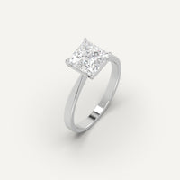 Cathedral 2 carat princess cut engagement ring, set with a high brilliance white and eye clean lab diamond in solid 14K white gold.