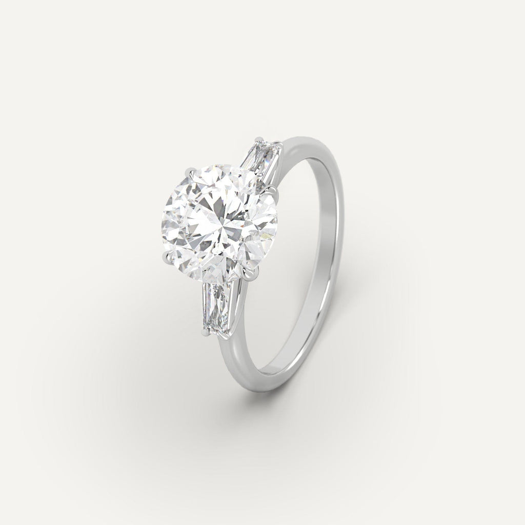 3-Stone 3 carat round cut engagement ring, set with a high brilliance white and eye clean lab diamond in solid 950 platinum.