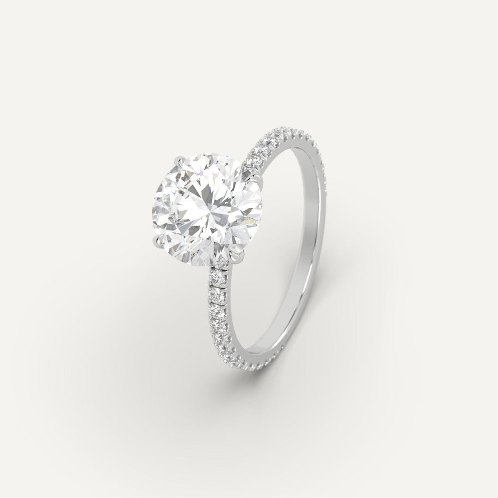 Pave 3 carat round cut engagement ring, set with a high brilliance white and eye clean natural diamond in solid 950 platinum