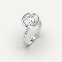 Bezel 3 carat round cut diamond engagement ring, set with a high brilliance white and eye clean clarity enhanced natural diamond in solid 950 platinum.