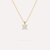 Classic 1/2 carat simple diamond pendant necklace for women, set with a high brilliance white and eye clean natural diamond in solid 14K yellow gold.