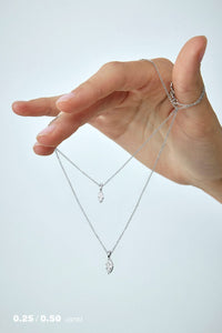 Classic 1/4 carat simple diamond pendant necklace for women, set with a high brilliance white and eye clean natural diamond in solid 14K white gold.