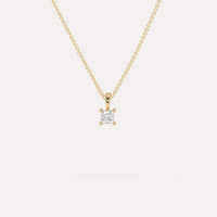 Classic 1/4 carat simple diamond pendant necklace for women, set with a high brilliance white and eye clean natural diamond in solid 14K yellow gold.