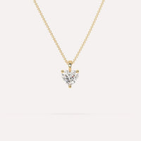 Classic 1 carat simple diamond pendant necklace for women, set with a high brilliance white and eye clean natural diamond in solid 14K yellow gold.