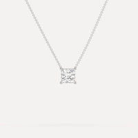 Classic 1 carat floating diamond necklace for women, set with a high brilliance white and eye clean natural diamond in solid 14K white gold.