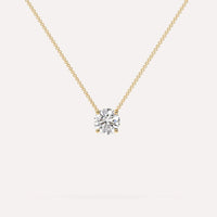 Classic 1 carat floating diamond necklace for women, set with a high brilliance white and eye clean natural diamond in solid 14K yellow gold.