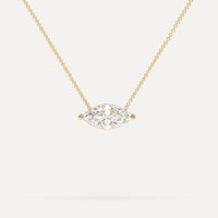 Classic 2 carat floating diamond necklace for women, set with a high brilliance white and eye clean natural diamond in solid 14K yellow gold.