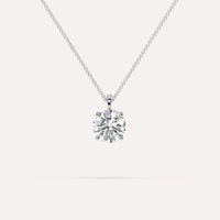 Classic 2 carat simple diamond pendant necklace for women, set with a high brilliance white and eye clean natural diamond in solid 14K white gold.