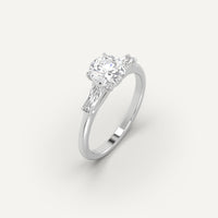 3-Stone 1 carat round cut engagement ring, set with a high brilliance white and eye clean lab diamond in solid 950 platinum.