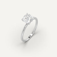 Solitaire 2 carat cushion cut engagement ring, set with a high brilliance white and eye clean lab diamond in solid 14K white gold.