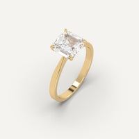 Cathedral 3 carat asscher cut engagement ring, set with a high brilliance white and eye clean natural diamond in solid 14K yellow gold.