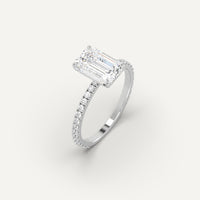 Pave 3 carat emerald cut engagement ring, set with a high brilliance white and eye clean natural diamond in solid 14K white gold.