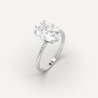Whisper Thin 3 carat oval cut engagement ring, set with a high brilliance white and eye clean natural diamond in solid 14K white gold.