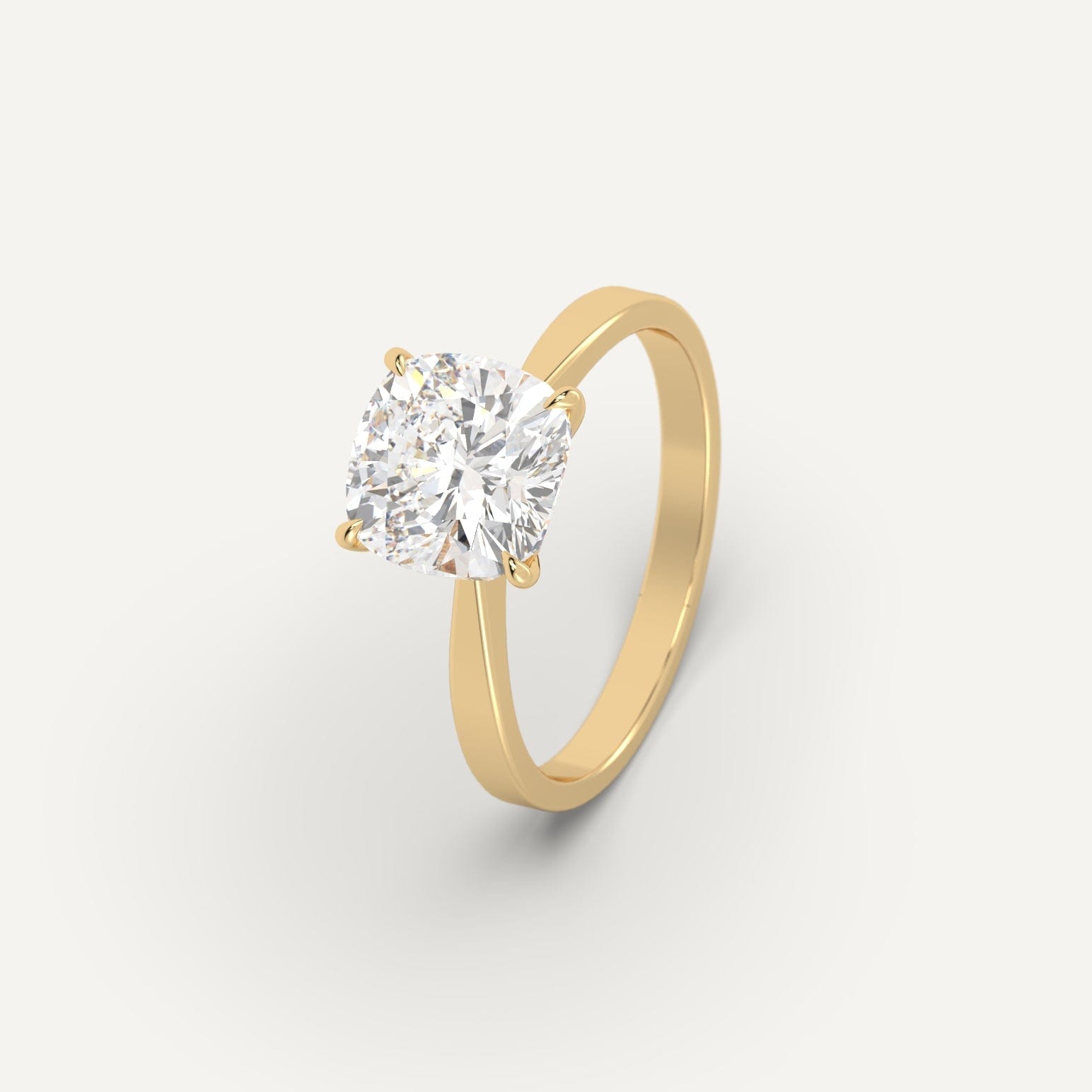 Cathedral 3 carat cushion cut diamond engagement ring, set with a high brilliance white and eye clean clarity enhanced natural diamond in solid 14K yellow gold.