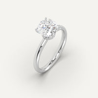 Hidden Halo 3 carat cushion cut engagement ring, set with a high brilliance white and eye clean lab diamond in solid 950 platinum.