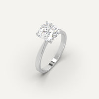 Cathedral 3 carat cushion cut engagement ring, set with a high brilliance white and eye clean natural diamond in solid 14K white gold.