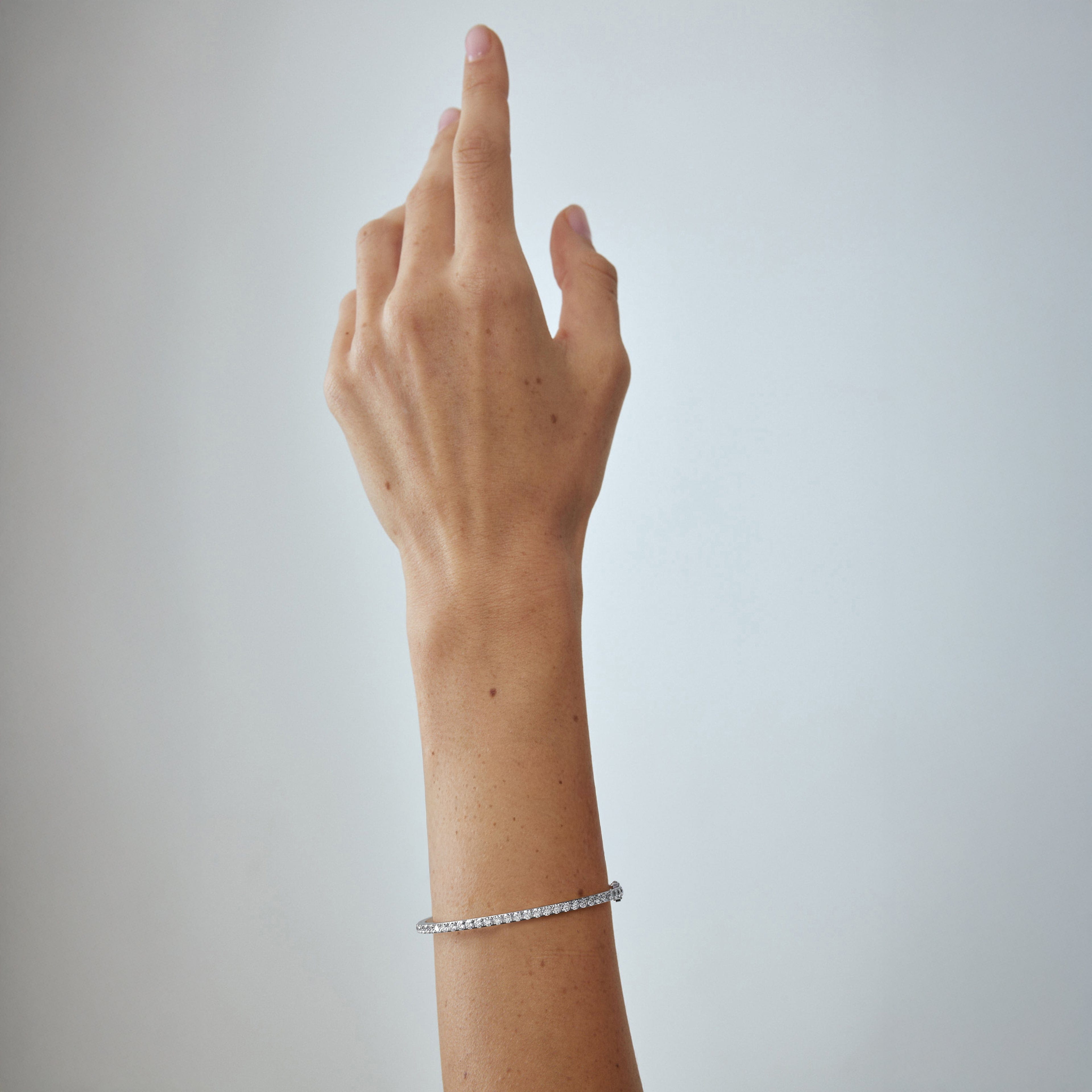 Classic 3 carat diamond bangle bracelet for women, set with high brilliance white and eye clean natural diamonds in solid 14K white gold.