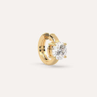 Classic 1 1/2 carat single diamond hoop earring for women or men, set with a high brilliance white and eye clean natural diamond in solid 14K yellow gold.
