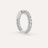 Timeless, everyday 2 carat total diamond 30mm, single hoop earring for women, set with high brilliance white and eye clean natural diamonds in solid 14K white gold.