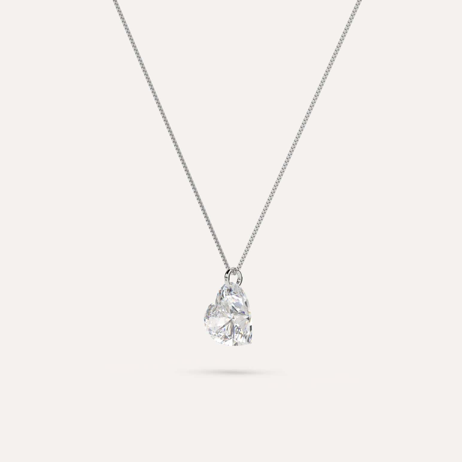 Classic and ultra-minimalist floating diamond necklace with a stunning 2 carat real lab grown heart diamond in 14K white gold. The venetian chain necklace is 16 inches and passes through the diamond for a uniquely clean aesthetic. A real floating diamond!
