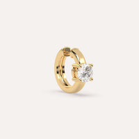 Classic 1/2 carat single diamond hoop earring for women or men, set with a high brilliance white and eye clean lab diamond in solid 14K yellow gold.