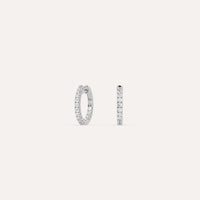 Timeless, everyday 1/4 carat total diamond 12mm small hoop earrings for women, set with high brilliance white and eye clean lab diamonds in solid 14K white gold.