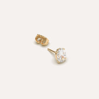 Classic 1 carat single diamond stud earring for women or men, set with a high brilliance white and eye clean lab diamond in solid 14K yellow gold.
