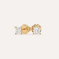 Classic 1 carat total diamond stud earrings for women, set with high brilliance white and eye clean lab diamonds in solid 14K yellow gold.