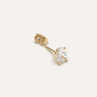 Classic 2 carat single diamond stud earring for women or men, set with a high brilliance white and eye clean lab diamond in solid 14K yellow gold.