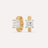 Classic 2 carat total diamond hoop earrings for women, set with high brilliance white and eye clean lab diamonds in solid 14K yellow gold.