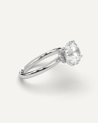 Hidden Halo 3 carat round cut engagement ring, set with a high brilliance white and eye clean lab diamond in solid 14K white gold.