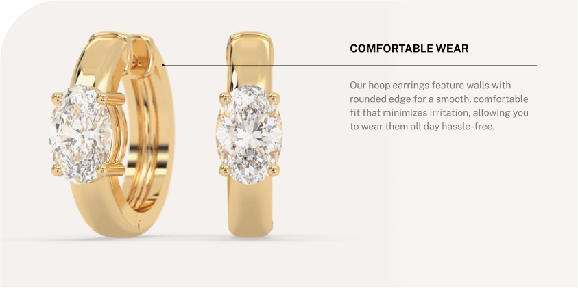 Classic 3 carat total diamond hoop earrings for women, set with high brilliance white and eye clean lab diamonds in solid 14K yellow gold.