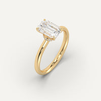 Hidden Halo 3 carat emerald cut engagement ring, set with a high brilliance white and eye clean lab diamond in solid 14K yellow gold.