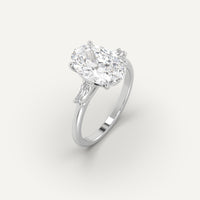 3-Stone 3 carat oval cut engagement ring, set with a high brilliance white and eye clean lab diamond in solid 950 platinum.
